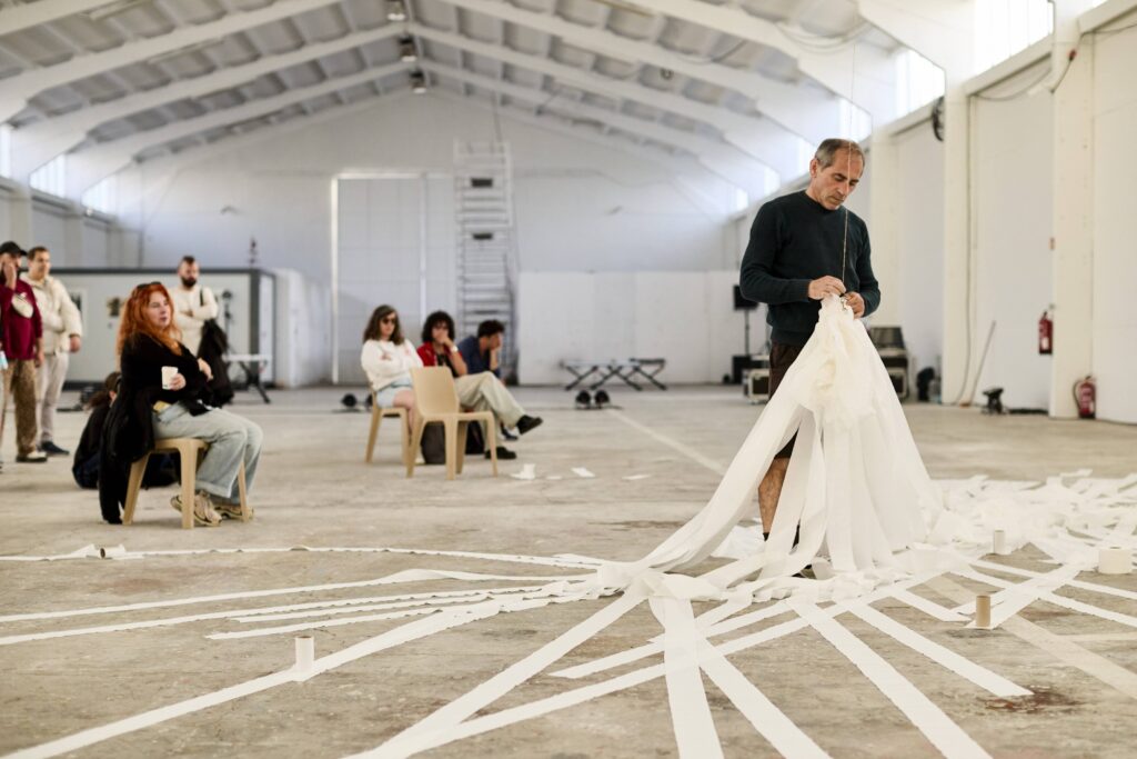 From the idea that from a two-dimensional design a tri-dimensional form is born, here we will try to understand how long a single action can last. First one manufactures the vowels and only then the consonants, bringing this wordless text to life. The project first premiered at ZDB in 2003 under the programme Propostas para quem Dança.